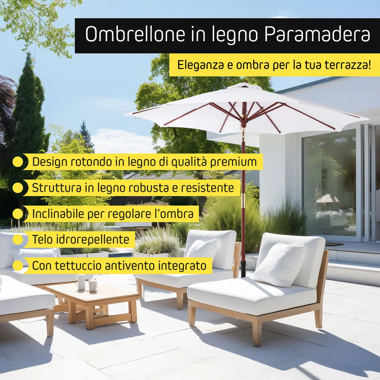 Acquista l'ombrellone in legno paramadera con un diametro di 3 m per una protezione solare elegante e autentica.
