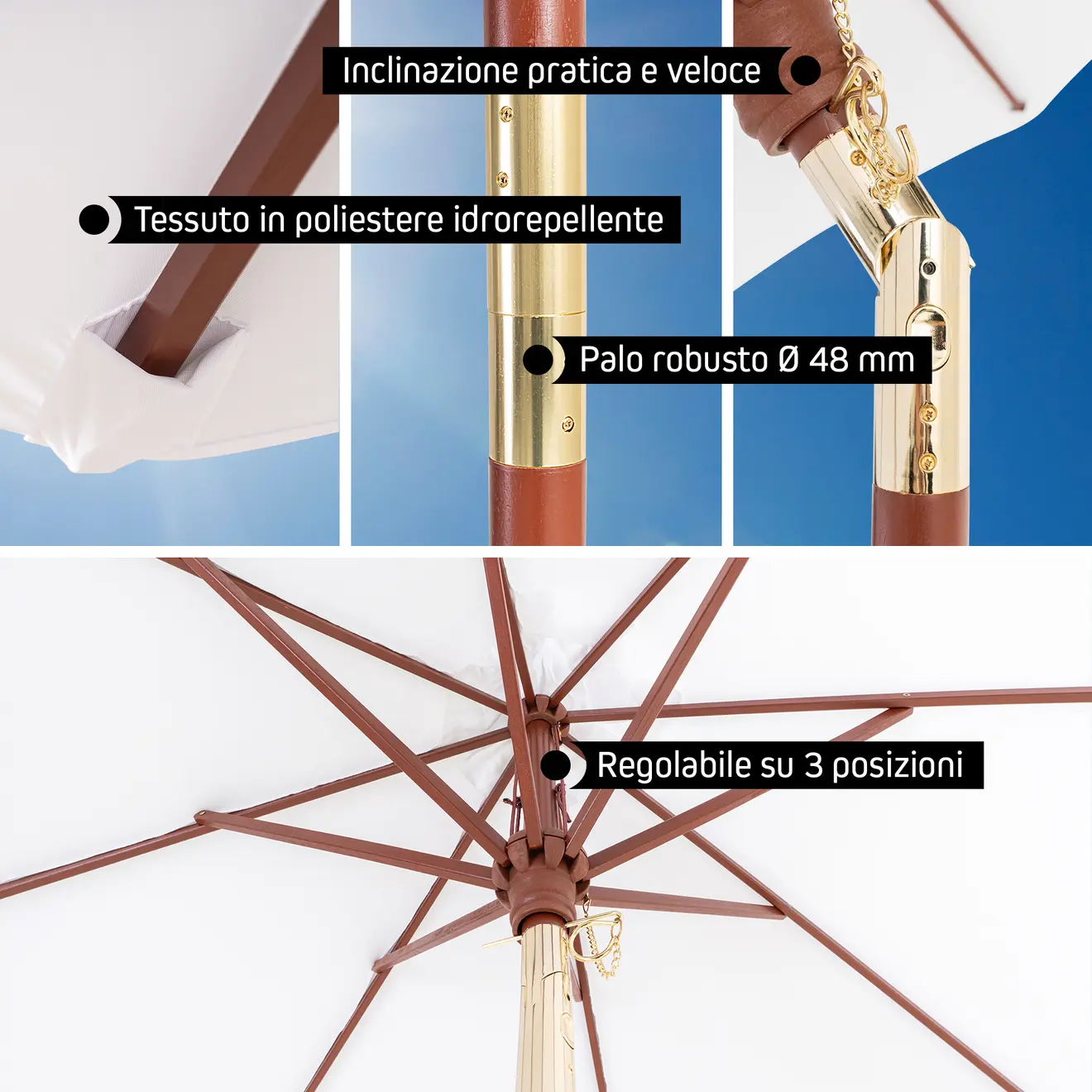 - L'ombrellone in legno offre molta ombra con un diametro di 3 m.