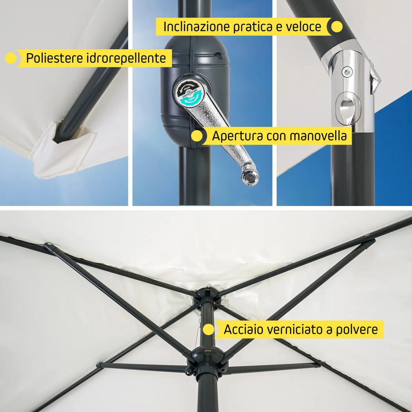Il tessuto dell'ombrellone è realizzato in poliestere idrorepellente e resistente al vento, disponibile nei colori grigio, crema, bianco o bordeaux. Grazie all'elevata solidità alla luce, i colori mantengono la loro brillantezza per lungo tempo. Ma non solo: il nostro piccolo ombrellone ti offre anche una buona protezione UV di 50+. Per evitare un accumulo di calore sotto l'ombrellone, c'è un tetto antivento sulla punta dell'ombrellone che garantisce una buona circolazione dell'aria. Si prega di notare che il supporto per ombrellone e le coperture protettive non sono inclusi nella fornitura. Questi accessori sono disponibili anche qui nel nostro negozio.