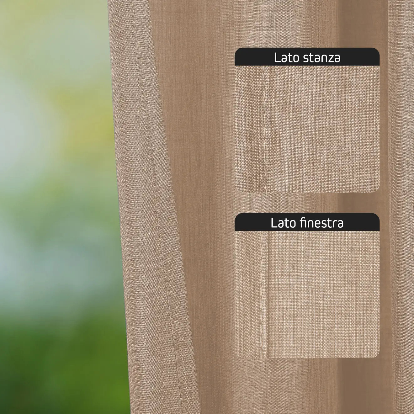 La tenda a struttura di lino è orlata ai bordi laterali e inferiori (1,5 cm), il che non solo ha una funzione estetica, ma contribuisce anche a far cadere bene la tenda.