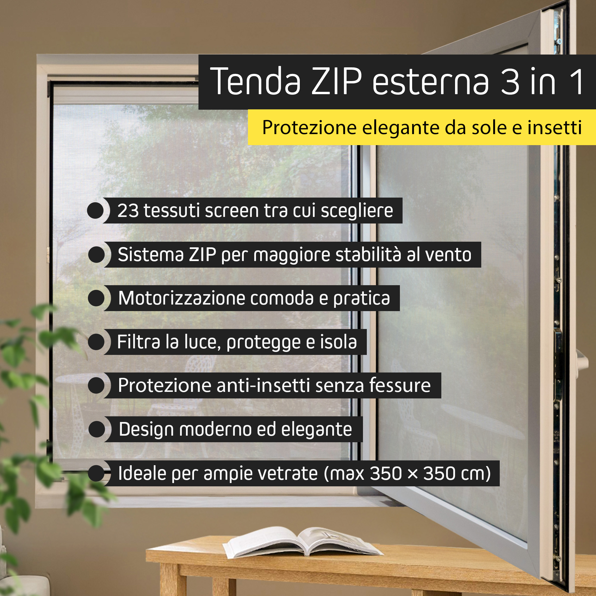 Schermatura visiva, protezione solare e barriera contro gli insetti in un unico sistema - Sistema ZIP