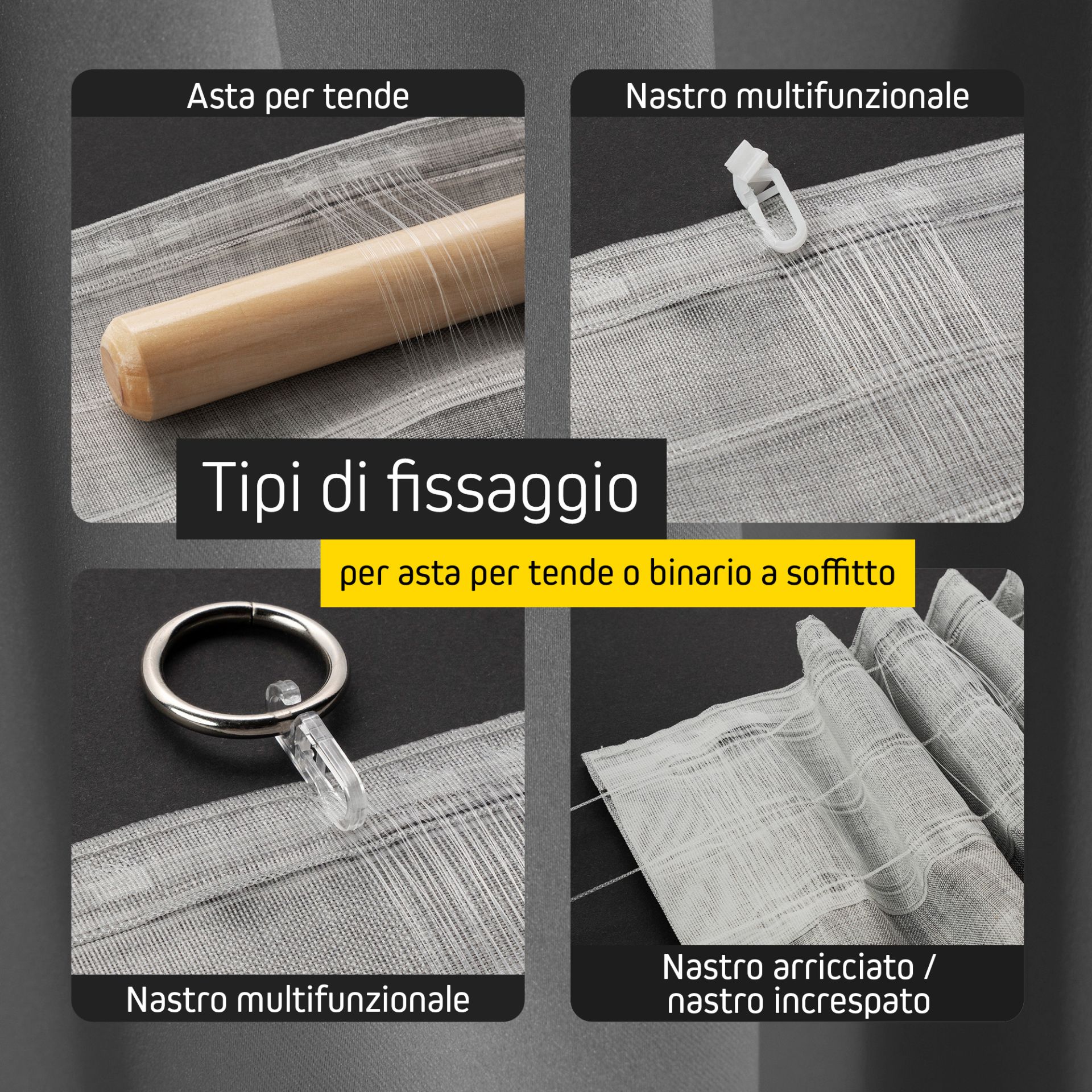 | Idoneità - asta per tende (asta piena): | SÌ tramite anelli con ganci pieghevoli o tramite passante integrato |
