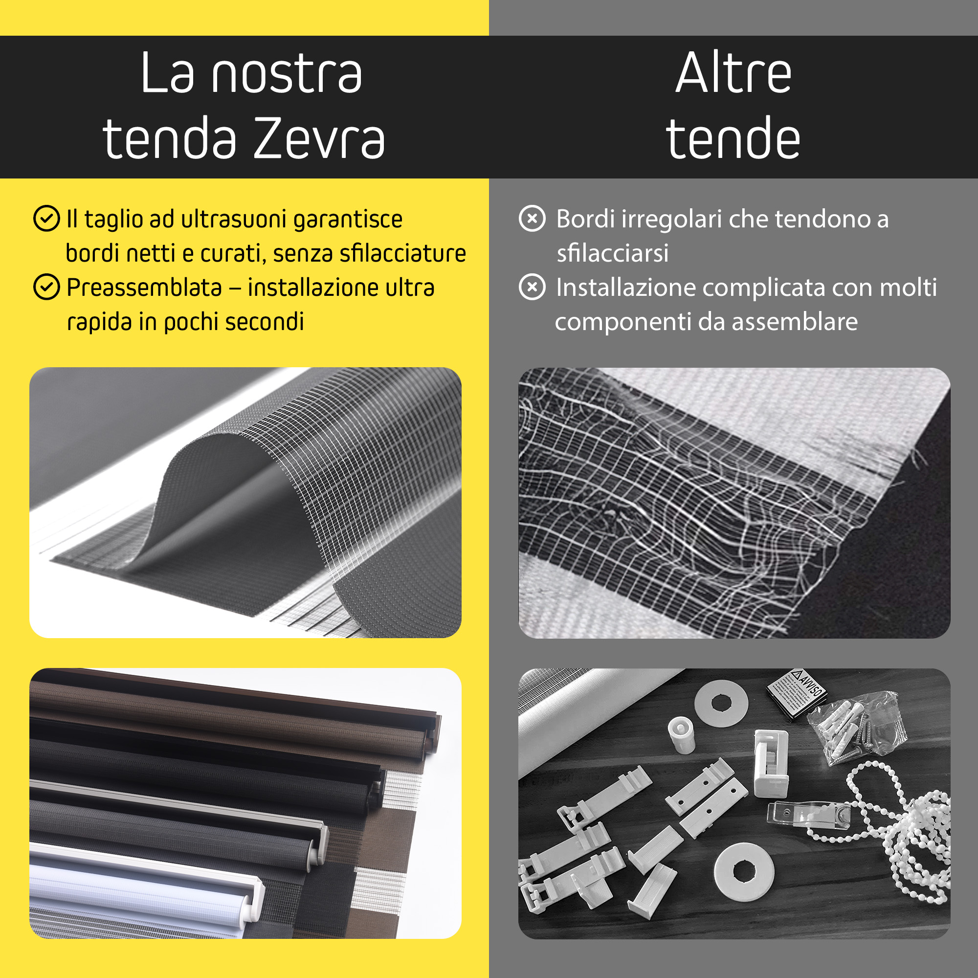 Il nostro obiettivo è offrirti una Tenda Giorno e Notte su misura di qualità superiore a un prezzo accessibile. Usiamo materiali selezionati e tecniche di produzione moderne per garantirti un prodotto robusto, resistente e al tempo stesso elegante.