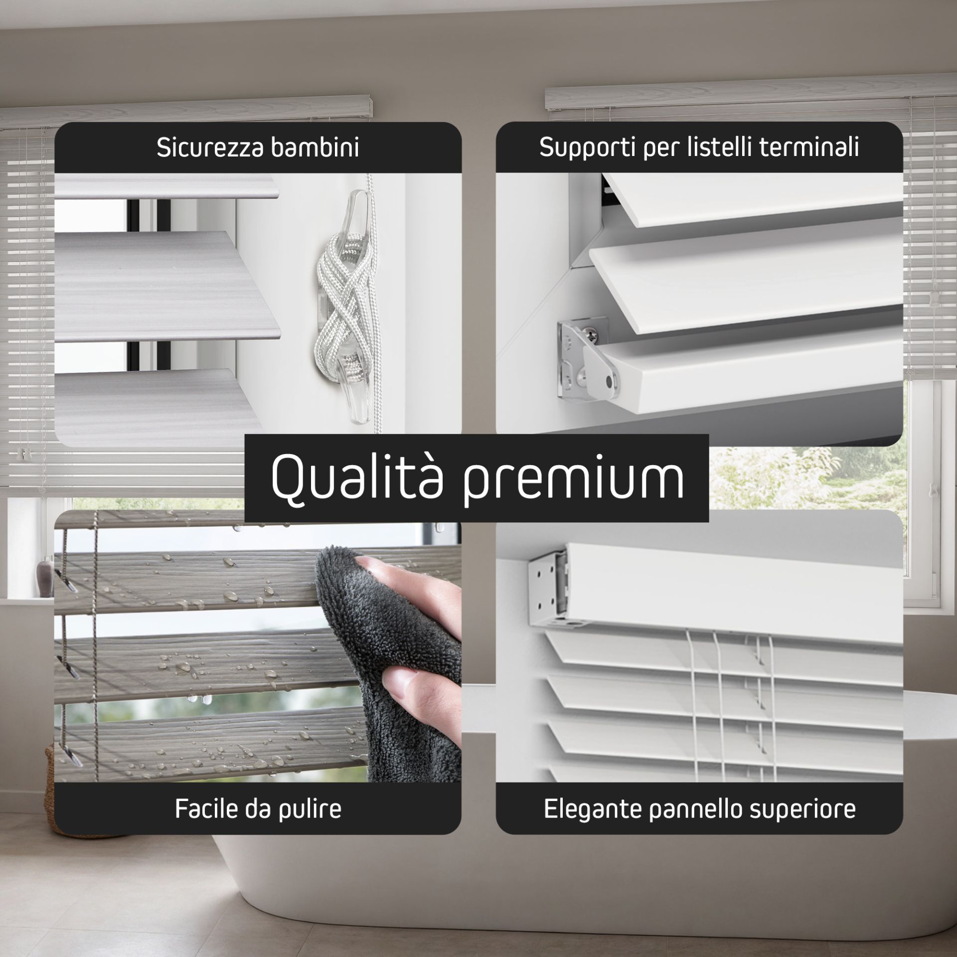 Le corde allentate possono rappresentare un pericolo mortale per i bambini piccoli. Fissare le corde fuori dalla portata dei bambini e applicare i dispositivi di sicurezza in dotazione.