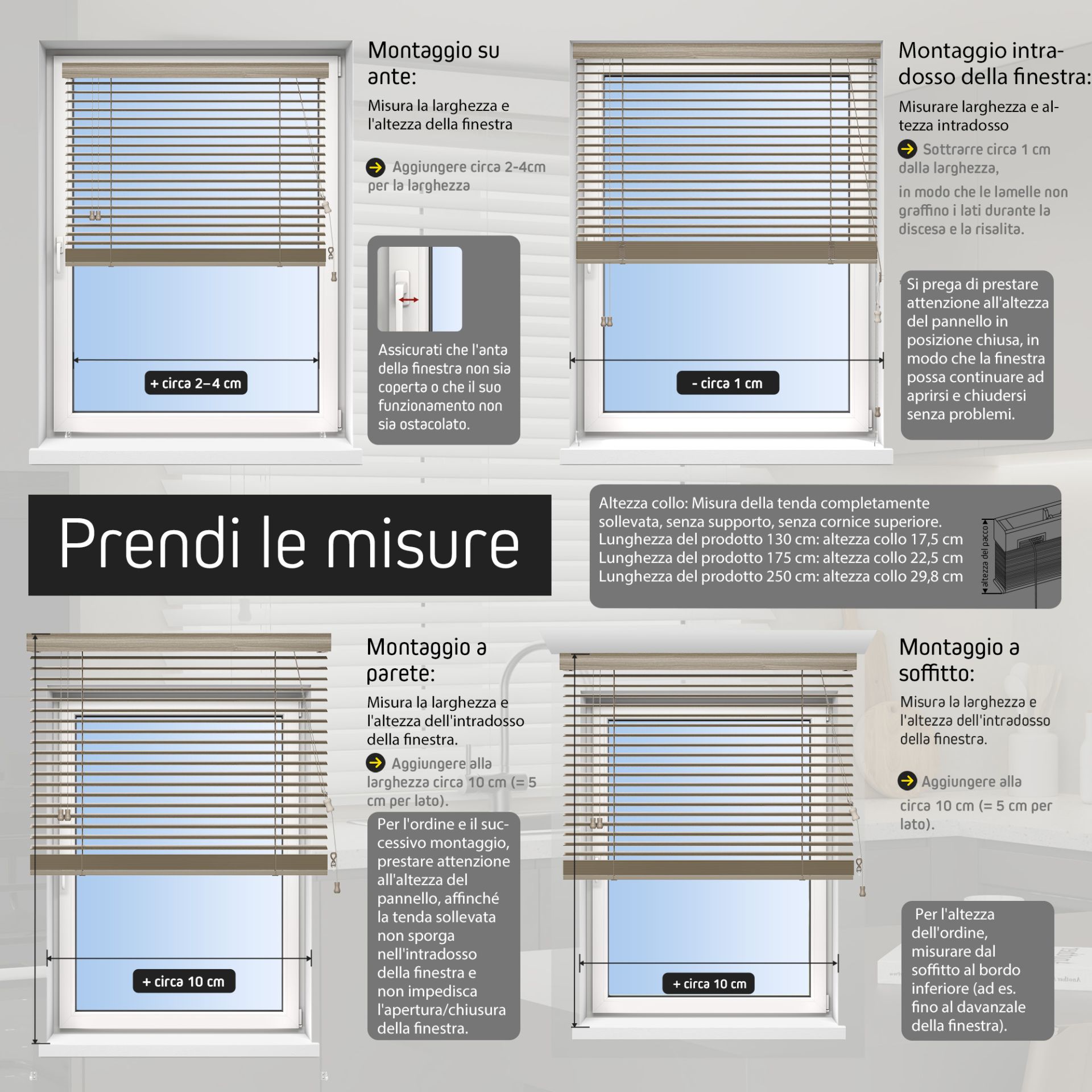 La dimensione corretta dell'ordine della tua veneziana in legno dipende anche dal tipo di montaggio desiderato. Procedi come segue per misurare: