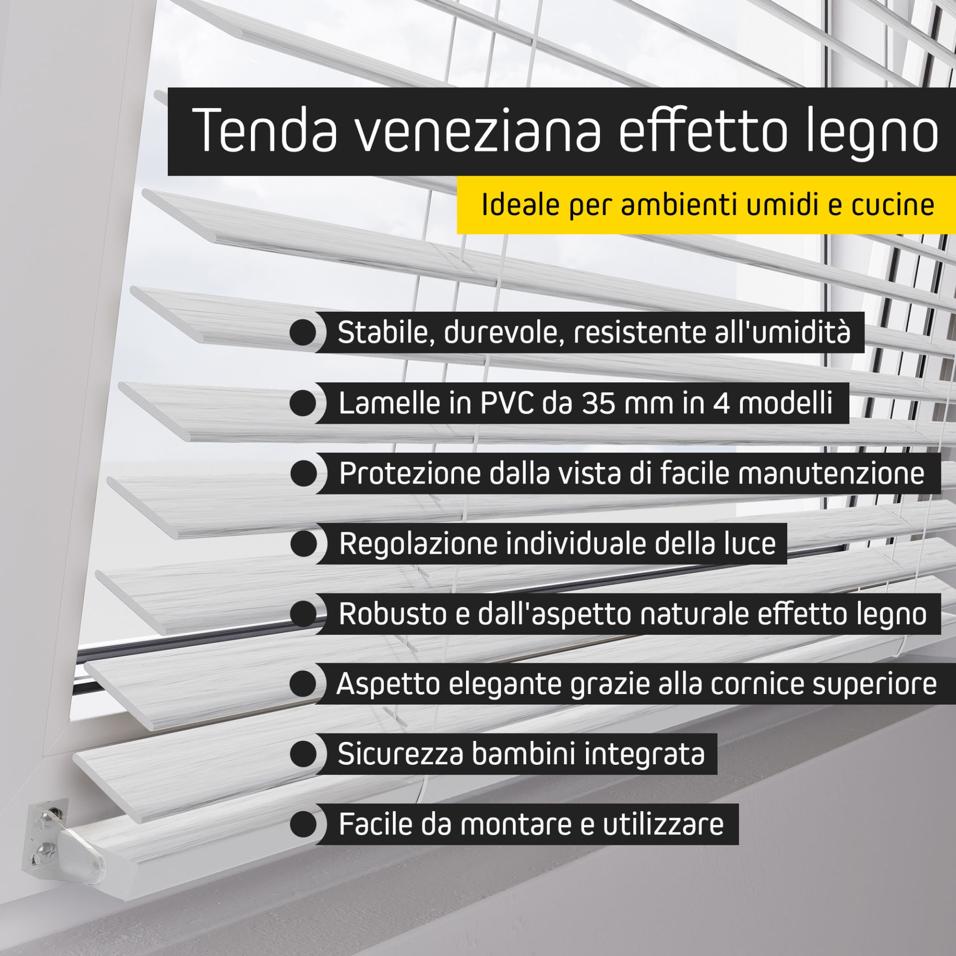 | Nome prodotto: | Veneziana effetto legno KAYA 35 mm | 90 x 250 cm, bianco |